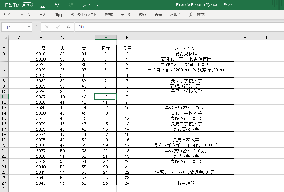 こうやってイベントを整理してみると、タイミングで大きな出費があり得るのかというのもわかりやすいわね!