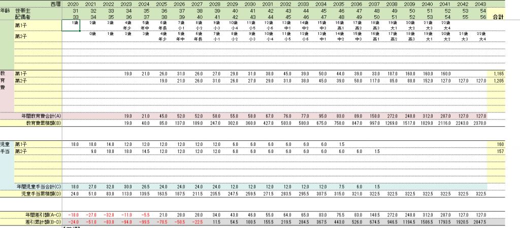 ライフイベント整理したら、ここからはキャッシュフローを計算見ましょう!